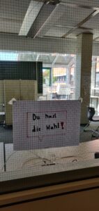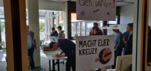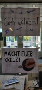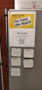 Das Wahlrecht besagt: Man darf erst ab 18 Jahren wählen. Dennoch haben viele Jugendliche eine politische Meinung und sollen diese auch zum Ausdruck bringen können. Hierfür haben rund 800 Schüler*innen der Jahrgänge 8 bis 13 an der Juniorwahl teilgenommen. Zuvor wurde die Wahl wochenlang in verschiedenen Schritten analysiert: Wer tritt an? Welche politischen Ziele werden verfolgt? Wie wird für sich geworben? Die Ergebnisse wurden im Forum der Schule ausgestellt und regten zu vielen politischen Diskussionen unter den Schüler*innen an.