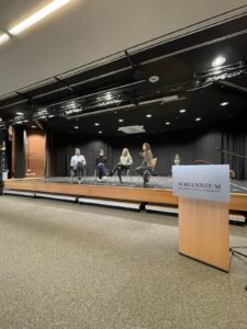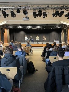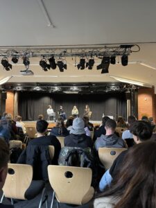 Die zukünftigen Abiturienten lauschten gebannt den Worten und es gestaltete sich eine spannende Fragerunde mit dem Publikum, die von Schüler*innen der Oberstufe angeleitet wurde.
