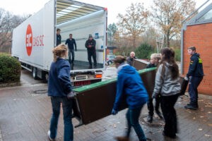 Unsere Schließfachschränke werden modernisiert und die bisherigen wurden nun an Schulen in Polen gespendet. Die Schließfachschränke sind nämlich nicht kaputt, sondern sollen nachhaltig genutzt werden. Hierfür wurde mit dem Verein „Internationale Partnerschaften“ (Partnerschaft Lüneburg-Wagrowiec) kooperiert, die es uns ermöglichten, Schulen in Polen mit den Schränken zu helfen. Beladen wurden die 42 Schränke auf einen LKW, der sowieso auf dem Rückweg nach Polen war und die Schränke an die Schulen auslieferte.
