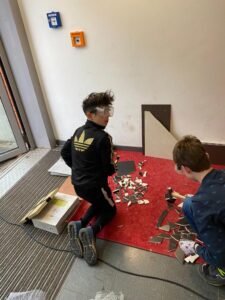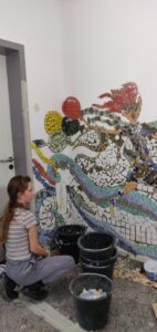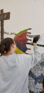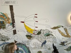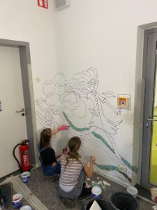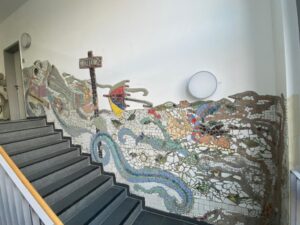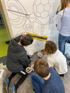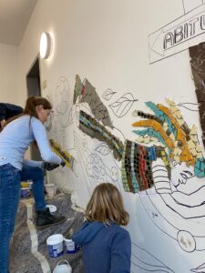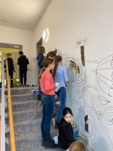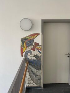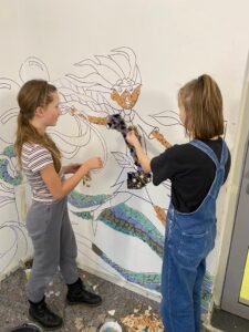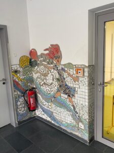 In der letzten Woche des ersten Halbjahres hat sich eine weitere 6. Klasse mit einem weiteren Fliesenmosaik am Johanneum verewigt. Das Kunstwerk zeugt von zwei Tagen künstlerischen und handwerklichen Tätigkeiten wie dem Kleben von Fliesen, dem Anrühren des Klebers sowie dem Verfugen des Mosaiks. Dabei konnten die Schüler*innen am gesamten Entstehungsprozess mitwirken – vom Einbringen eigener Motivvorschläge bis zum Polieren der Fliesen nach vollendeter Arbeit. Besucht gerne den rechten Aufgang im Neubau!