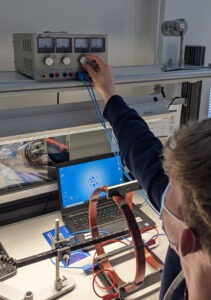 Dabei untersuchten die Schüler unter anderem experimentell und auch anhand theoretischer Überlegungen, wie man die Masse oder die Geschwindigkeit dieser nicht sichtbaren Teilchen bestimmen kann und wie sie sich beschleunigen oder von ihrer Bahn ablenken lassen. Die zugehörigen physikalischen Modelle hatten die Schüler bereits im ersten Semester des 12. Schuljahrs kennengelernt, sodass die vertiefende Auseinandersetzung im Schülerlabor ein nachhaltiges Lernen auch im Sinne einer frühzeitigen und gründlichen Vorbereitung auf die Abiturprüfungen begünstigt.