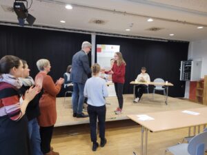 Sensationell gewinnt unsere Schülerin Ricarda aus dem 9. Jahrgang den Regionalentscheid von Jugend debattiert in Uelzen und zieht weiter in die nächste Runde: Im März werden in Hannover die Sieger*innen aller Regionalentscheide im Landesentscheid aufeinandertreffen und in den Bereichen Sachkenntnis, Ausdrucksvermögen, Gesprächsfähigkeit und Überzeugungskraft miteinander konkurrieren. Wir drücken Ricarda unsere Daumen und danken zugleich auch den weiteren Johannitern, die sich in Uelzen von ihrer besten Seite gezeigt haben! Vier von uns haben es in die Top 10 geschafft!