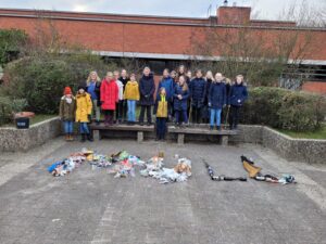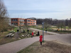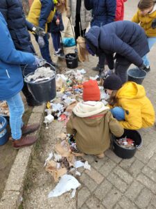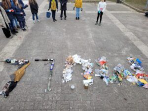Der Umgang mit Müll und Strategien zur Müllvermeidung sind eine erste Herzenssache der Gruppe gewesen. Trotz des bestehenden Pausenhofdienstes haben 20 Schüler*innen der AG aus den Jahrgängen 5 und 6 motiviert und engagiert auf dem eigenen Schulhof Müll gesammelt und dabei überraschende Funde gemacht: einen Teppich, Wischmopp, ein großes Tafeldreieick sowie diverse Kleidungsstücke. In der kommenden Woche werden die Erfahrungen gemeinsam reflektiert und Recycling beleuchtet.