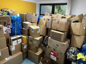 So viel passte erst gar nicht in den Laster der Deutschen Kleiderstiftung: Mehr als 100 Kartons an Kleidung wurden innerhalb weniger Tage als Spende für Erdbebenopfer in der Türkei abgegeben, wozu das Schülersprecherteam (SST) und Unterstützer*innen aus der Schülerschaft aufgerufen hatte. Die Spenden kamen von Schüler*innen, Eltern und Lehrer*innen und wurden nach einer Sortierung im SST-Raum anschließend im Oberstufenhaus zwischengelagert. Wie im Artikel der Landeszeitung notiert, konnten die Kleiderspenden wegen bürokratischer Hürden erstmal nicht gespendet werden, weshalb die Freude groß war, als die Verbindung zur Deutschen Kleiderstiftung hergestellt werden konnte: In zwei Fahrten wurden alle Kartons abgeholt und kommen nun dem guten Zweck zu. Wir danken allen Beteiligten, Spendern und unserer couragierten Schülerschaft!