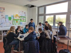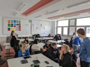 Jubelschreie im Wirtschaftsunterricht? Emotionen waren am Zukunftstag des 10. Jahrgangs deutlich zu spüren, als die Schüler*innen in ihren Klassen als Unternehmen gegeneinander antraten und mit dem Produkt „Smartwatch“ um die Gunst der Konsumenten konkurrierten.