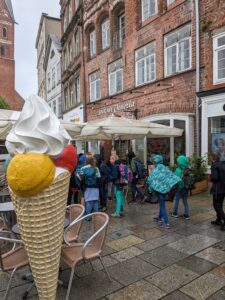Danach entdeckten die Schüler*innen dank einer sehr informativen und abwechslungsreichen Führung die Ratsbücherei Lüneburg. Die Abteilung „Kinder- und Jugendbücherei“ konnte mit Literatur verschiedener Gattungen, der Bibliothek der Dinge, Spielmöglichkeiten und noch viel mehr begeistern. Vielen Dank für die wieder einmal sehr freundliche und kompetente Begleitung! Nach der intensiven Auseinandersetzung mit den Welten der Literatur und der Verwandlung in Lesewesen wurde noch die Welt der Eissorten entdeckt – ein schöner und leckerer Abschluss!