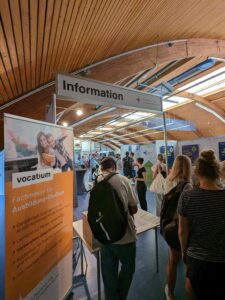 Noch vor dem Start der Sommerferien haben sich die Schüler*innen unseres 12. Jahrgangs auf der Berufsmesse Vocatium in Einzelgesprächen intensiv mit Unternehmen, Universitäten, Fachhochschulen und auch staatlichen Institutionen ausgetauscht und ein Gefühl für Bewerbungsgespräche erhalten. Zusätzlich konnten Fachvorträge zum Bewerbungsprozess, zum dualen Studium, aber auch zur Karriere bei der Bundeswehr besucht werden. Das Angebot war sehr vielfältig und so kamen viele Gespräche zwischen den Schüler*innen und Messe-Aussteller*innen auch kurzfristig noch zustande.