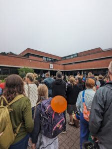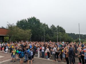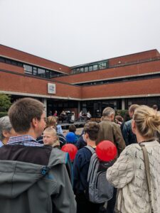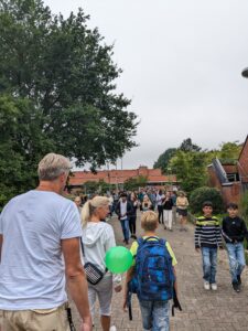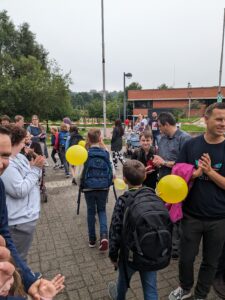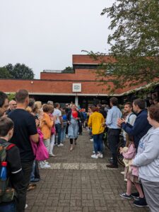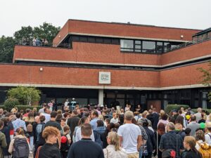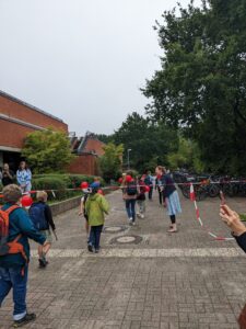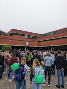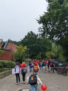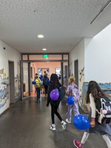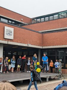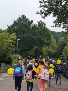 Die Stimmung war erstklassig und ließ die trüben Wolken schnell vergessen! Der neue 5. Jahrgang wurde von der Schulleitung sowie den neuen Klassenlehrkräften herzlich empfangen und in die neuen Klassenzimmer begleitet. Zuvor konnten sich die neuen Klassenfreunde bereits anhand der farbigen Ballons erkennen und die erste Aufregung war schnell vergessen. Musikalisch wurde die Einschulung feierlich von der Musik-AG der Unterstufe eröffnet und kulinarisch von der Elternschaft und dem Förderverein begleitet. Nach der Einschulung begann die Orientierungswoche, um die Schule kennenzulernen.