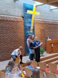 Gefeiert wurde der Gottesdienst nach guter Tradition im ökumenischen Gemeindezentrum St. Stephanus unter der Leitung von Pastorin Wiesenfeldt, Pastoralreferenten Honert und Schülerinnen und Schülern der Religionskurse von Frau v.Frieling und Frau Filohn. Wir danken auch Frau Meincke für die musikalische Begleitung!