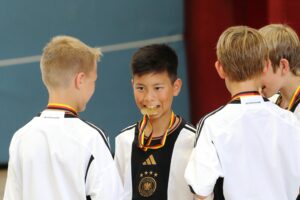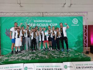 Das Ergebnis von 0-5 spiegelte allerdings keineswegs den Spielverlauf wider, da sich die Jungs mit Herz, Kampf und cleveren Spielzügen den Respekt der Gegner verdienten! Im letzten Spiel um Platz 7 hieß der Gegner Brandenburg. Trotz spielerischer Überlegenheit und einer zum wiederholten Male starken Leistung hieß es am Ende 1-2. Doch die Enttäuschung währte bei den Jungs zum Glück nicht lange, denn allmählich realisierten sie, dass sie sich nun die achtbeste Schulmannschaft Deutschlands nennen dürfen!