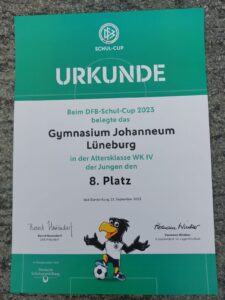 Bereits der souveräne Sieg im Landesfinale vor den Sommerferien war für das Johanneum ein historischer Erfolg, doch auch beim Bundesfinale vom 19. – 21.9. lieferten die Jungs großartig ab! Neben einer Top-Verpflegung wurde allen Teams abends ein tolles Rahmenprogramm mit zwei professionellen Freestylern (Ballakrobaten) geboten, bei dem unsere Jungs ihre beeindruckenden technischen Fähigkeiten präsentieren konnten.