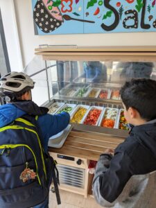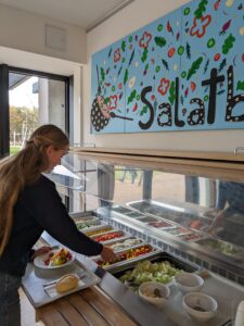 Besonders beliebt ist die neue Salatbar, die eine gesunde Ergänzung zum täglichen Speiseangebot darstellt. Die Schlangen bei der Essensausgabe bezeugen die positive Resonanz der Schüler*innen. Täglich können sie zwischen zwei verschiedenen Mahlzeiten wählen und bei gutem Wetter auch draußen auf den verschiedenen Tischen und Sitzmöglichkeiten speisen.