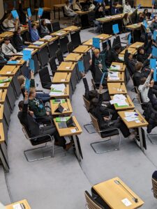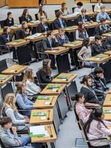 In der Europäischen Union, einem Zusammenschluss von 448,4 Millionen Menschen auf über 4 Millionen Quadratkilometern, stellt sich die Frage, wie das friedliche Zusammenleben funktionieren können, während demokratische Prinzipien gewahrt bleiben. Eine Gruppe engagierter Schüler*innen des Leistungskurses Politik-Wirtschaft im 12. Jahrgang begab sich auf die Reise in unsere Hauptstadt, um ihre Rollen zu wechseln und und dabei ganz praktisch die kommende EU-Wahl sowie aktuelle politische Debatten in den Blick zu nehmen.
