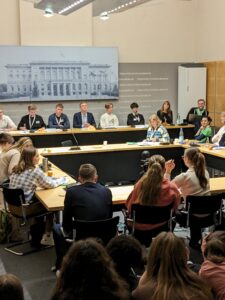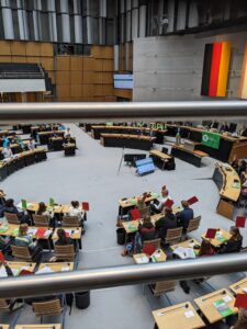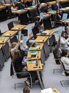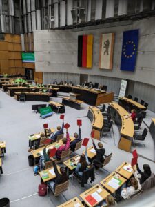Die Reise führte die Schüler*innen aus ganz Deutschland nach Berlin. Das Ziel der Fahrt war die Teilnahme an der Simulation des EU-Parlaments SIMEP (organisiert von „Junge Europäische Föderalist*innen Berlin-Brandenburg), das darauf abzielte, die Jugendlichen für eine demokratische EU zu sensibilisieren und ihre Perspektiven auf aktuelle politische Entwicklungen zu schärfen.