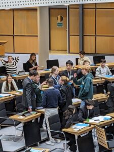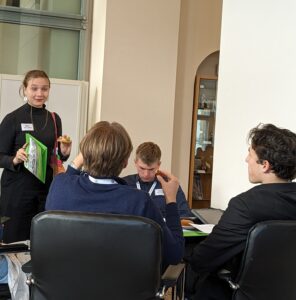 Ab dem ersten Tag des Planspiels schlüpften die Jugendlichen in die Rollen von EU-Abgeordneten, die zuvor ihre Präferenzen angegeben hatten. Eine Woche vor der Reise erhielten sie umfangreiche Unterlagen zur Rollenzuweisung, zum zugewiesenen EU-Land und zur EU-Fraktion, um sich intensiv auf ihre Rolle vorzubereiten. In Ländergruppen tauschten sie zunächst spezifische Interessen aus, bevor es zu den ersten Fraktionssitzungen kam. Hier erlebten sie hautnah, wie herausfordernd es sein kann, eine Schnittmenge zwischen verschiedenen Länderinteressen und politischen Grundlinien zu finden.