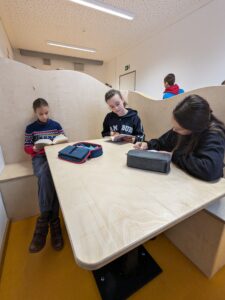 Begeisterte Schüler*innen und Lehrer*innen: Der Aufbau der neuen Möbel, geliefert von einer Lüneburger Tischlerei, wurde von Schüler*innen gespannt verfolgt. Nach einer Einweisung durch die Lehrkräfte nutzen sie die modernen Möbel bereits eifrig. Ob bei Gruppenarbeiten, Projektarbeiten oder in Stillphasen – die Schüler*innen fühlen sich sichtlich wohl und schätzen die Vorzüge der zeitgemäßen Möblierung.