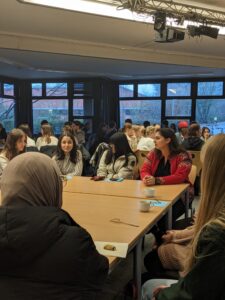 Viele der ehemaligen Schüler*innen haben nach ihrem Abschluss vielfältige Wege eingeschlagen, sei es durch ein Studium oder eine Ausbildung. Das Café sollte einen Raum für persönliche Gespräche und den Austausch von Erfahrungen zu schaffen. An sieben Cafétischen tauschten sich die Alumni mit Schüler*innen des aktuellen 12. Jahrgangs aus. Die ehemaligen Schülerinnen und Schüler berichteten über ihre Erlebnisse nach dem Abitur und gaben wertvolle Empfehlungen für die Zukunft.