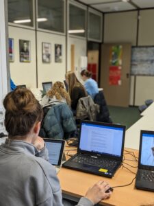 Im Anschluss daran vertieften die Schüler*innen in den Klassenverbänden ihr Wissen in zwei thematischen Blöcken. In der ersten Hälfte des Tages absolvierten sie ein Werkzeugtraining, um ihre Fähigkeiten für den zukünftigen Praktikumsbericht im Umgang mit Textverarbeitungsprogrammen zu verbessern. Dabei standen nicht nur die Grundlagen verschiedener Formatierungen im Mittelpunkt, sondern auch die praktische Umsetzung konkreter Vorgaben für Praktikumsberichte, einschließlich Kopf- und Fußzeilen sowie Inhaltsverzeichnisse. In der zweiten Hälfte des Tages tauchten die Schüler*innen tiefer in die Berufsfelder der Informatik ein. Sie hatten die Möglichkeit, Werbung für ein Berufsfeld ihrer Wahl zu erstellen und dieses in Form einer Seite in einer Zeitschrift, eines Podcasts, eines Films oder eines Netflix-Trailers zu präsentieren.