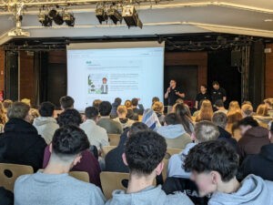 Die Veranstaltung begann mit einer informativen Präsentation in der Aula, in der zwei renommierte Unternehmen aus Lüneburg, Werum und SecurePoint, die Bühne betraten. Herr Bohlen von Werum und die Herren Fassnauer, Springer und Momberger von SecurePoint informierten die Schüler*innen über die vielfältigen Ausbildungs- und Studienmöglichkeiten in der Branche. Von der Ausbildung zum Fachinformatiker bis hin zum dualen Studium boten sie einen umfassenden Einblick in die verschiedenen Wege, um in der IT-Karriere Fuß zu fassen. Darüber hinaus präsentierten sie die Tätigkeitsbereiche ihrer Unternehmen, wobei Werum den Fokus auf Aspekte des Softwareentwicklungsprozesses legte, während SecurePoint die Sensibilisierung im Umgang mit personenbezogenen Daten betonte.