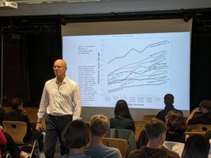Nach der Schule studieren … und dann? Wie wäre es, im universitären Betrieb zu bleiben und im Rahmen einer akademischen Laufbahn vollberuflich zu forschen und zu lehren? Um diese Option abwägen zu können, haben wir uns sehr gefreut, im Rahmen unserer Berufsorientierung Prof. Dr. Welzel als Politologen von der Leuphana Universität Lüneburg zu Besuch zu haben. Die Stationen in die Wissenschaft als Beruf wurden nachvollziehbar skizziert und Herr Prof. Dr. Welzel zeigte die Attraktivität des Berufs als Professor auf. Zusätzlich stellte er seine Weltwertestudie als Teil seiner wissenschaftlichen Arbeit vor. Die Schüler*innen des 11. Jahrgangs waren sowohl an der Studie als auch an seinem Werdegang sehr interessiert.