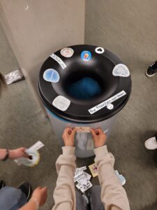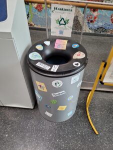 Die AG Bildung für Nachhaltige Entwicklung (BNE) von Frau Lindhorst hat sich eine kreative Lösung einfallen lassen, um ein häufiges Missverständnis im Schulalltag zu beseitigen. Mit eigens gestalteten Stickern wurden die Pfandtonnen im Hauptgebäude und im Neubau markiert, sodass sie nicht mehr mit normalen Mülleimern verwechselt werden können.