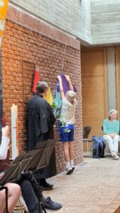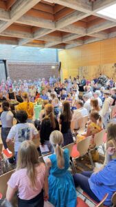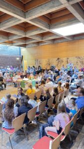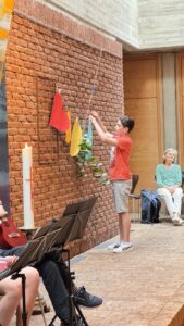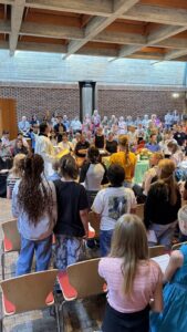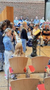 In der liebevoll geschmückten Kirche wurden die neuen Fünftklässler*innen herzlich willkommen geheißen. Die Schüler*innen des Religionskurses der sechsten Klasse, unter der Leitung von Frau Filohn, hatten ein buntes Programm vorbereitet. Mit einfühlsamen Texten und kreativen Darbietungen schufen sie eine Atmosphäre der Gemeinschaft und Freude. Die Ukulele-AG von Frau Nolden sorgte mit ihren fröhlichen Melodien für musikalische Highlights und begeisterte die Anwesenden.