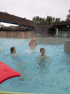 Neben den Abzeichenprüfungen stand auch der Spaß im Vordergrund. Zwischen den Übungen führten die Jugendlichen Trockenübungen im Kraulen durch und nahmen an einem Wettrutschen teil. Das Highlight für viele war das Wellenbad, das für zusätzliche Freude sorgte.