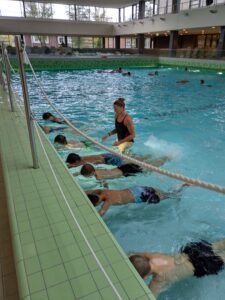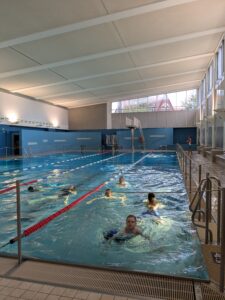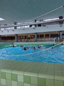 Kurz vor den Herbstferien stand für die Klassen 7FL und 7S2 ein besonderer Termin auf dem Stundenplan: Ein Besuch im Schwimmbad Salü. Im Rahmen des Sportunterrichts hatten die Schülerinnen und Schüler in den Wochen zuvor bereits im Freibad Hagen ihre Schwimmfertigkeiten trainiert. Theoriewissen wurde abgefragt, praktische Übungen standen auf dem Programm – und nun konnten alle ihr Können im Schwimmbad unter Beweis stellen.