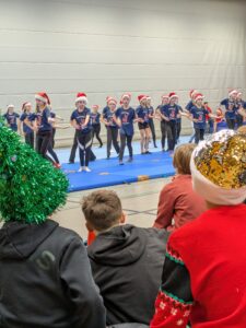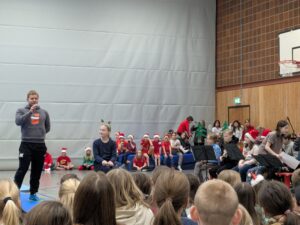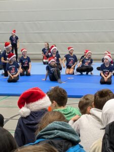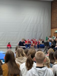 Schon zu Beginn sorgte die Akrobatik-AG mit einem beeindruckenden Intro für Staunen, bevor die offizielle Begrüßung den Auftakt bildete. Es folgten zwei mitreißende Stücke der Band-AG, die die Halle mit musikalischer Energie erfüllten. Danach brachte die Wichtelbande der Klasse 5F2 mit ihrem Beitrag alle zum Schmunzeln. Besonders berührend war die Weihnachtsgeschichte, vorgetragen von einer Schülerin aus der 6L, die das Publikum zum Nachdenken anregte.