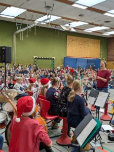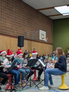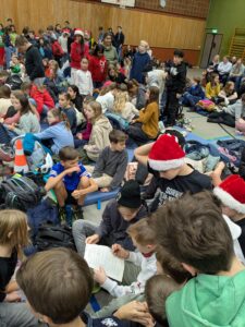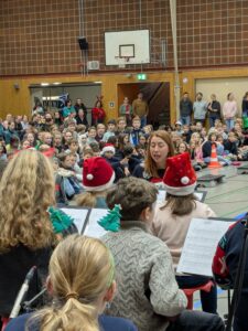 Ein voller Erfolg – so lässt sich die Weihnachtsfeier 2024 zusammenfassen. Alle Anwesenden haben mitgefiebert, mitgesungen und zusammen getanzt. Die fröhliche Stimmung übertrug sich auf die anschließenden klasseninternen Weihnachtsfeiern, sodass rund 300 Schülerinnen und Schüler beseelt in die Ferien starten konnten.