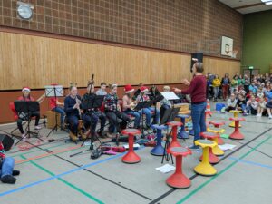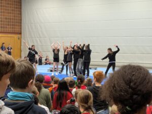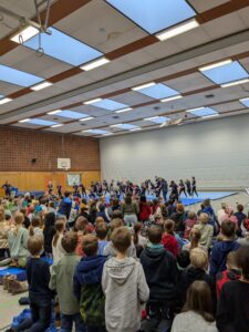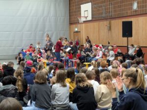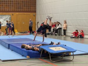 Der zweite Teil der Ukulelen-AG sorgte erneut für musikalische Highlights, bevor die Akrobatik-AG mit spektakulären Sprüngen auf dem Trampolin die Zuschauer begeisterte. Die Auflösung des Quizzes und die abschließende Verabschiedung rundeten das Programm ab. Als krönender Abschluss lud die Akrobatik-AG zu einer interaktiven Mitmach-Aktion ein, bei der alle ihre Bewegungsfreude ausleben konnten.