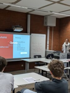 Direkt aus der Praxis berichteten die jungen Auszubildenden über ihren Berufsalltag, ihren Betrieb und den Übergang von der Schule in die Arbeitswelt. Welche Herausforderungen warten nach dem Schulabschluss? Was macht die Ausbildung besonders spannend? Mit persönlichen Einblicken und ehrlichen Erfahrungen machten sie nicht nur neugierig auf ihren Beruf, sondern gaben auch wertvolle Impulse für das Betriebspraktikum in Klasse 11.