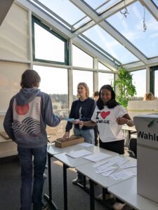 Bereits im Vorfeld war klar, dass diese Juniorwahl – ebenso wie die Bundestagswahl – durch ihre kurzfristige Ansetzung herausfordernd und besonders zugleich war. Trotz des relativ knappen Zeitrahmens gelang es uns, eine reibungslose und gut organisierte Wahl zu gewährleisten. Die Schulermedienbibliothek im Hauptgebäude wurde hierfür in ein temporäres Wahlbüro umgewandelt, in dem sämtliche Abläufe strukturiert durchgeführt wurden.