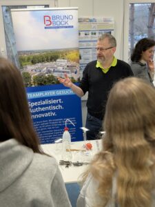 Besonders beeindruckend war der respektvolle Austausch zwischen den Schülern und den teilnehmenden Unternehmen. Die Firmenvertreter nahmen sich Zeit, erklärten geduldig und beantworteten Fragen – oft entstanden spannende Gespräche über Karrierewege, Ausbildungs- und Studienmöglichkeiten. Auch in den Pausen wurde weiter diskutiert, Berufe verglichen und erste Zukunftspläne geschmiedet.