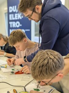 Denn nichts ersetzt die eigene Erfahrung, wenn es darum geht, herauszufinden, welche Tätigkeiten wirklich Spaß machen und welche Berufsfelder vielleicht eine Zukunftsperspektive bieten. Genau das konnten die Jugendlichen in diesen zwei Tagen ausprobieren: Löten, einen kleinen Roboter programmieren, mit typischen Arbeitsgeräten arbeiten, erste Schritte in technischen, kaufmännischen oder sozialen Berufen ausprobieren. Sie bekamen dabei ein Gefühl für handwerkliche Tätigkeiten, technologische Prozesse und betriebliche Abläufe.