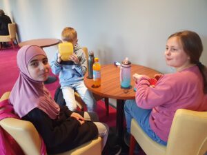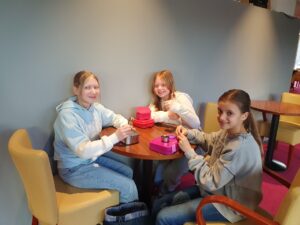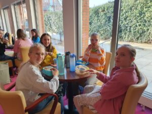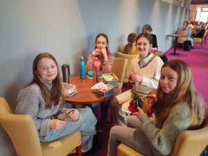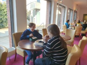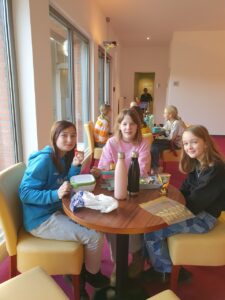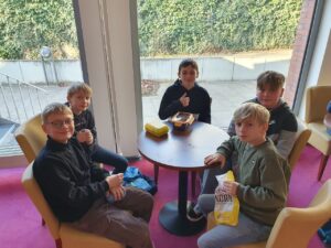 Nach der Führung konnten sich die Klassen bei einer gemütlichen Frühstückspause im Foyer stärken und mit der Theaterpädagogin ins Gespräch kommen, die bereitwillig weitere Fragen beantwortete und Hintergründe zur Arbeit am Theater erklärte.