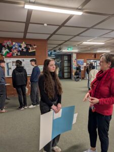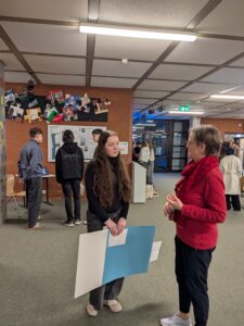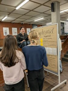 Besonders wurde es, als die Gespräche begannen – denn dabei wurde oft erst richtig deutlich, wie prägend diese ersten beruflichen Erfahrungen waren. Viele Schüler*innen berichteten im Austausch mit den 10. Klassen, Lehrkräften und auch interessierten Eltern, die vorbeischauten, wie sie durch das Praktikum eine klarere Vorstellung ihrer beruflichen Interessen gewonnen haben – oder sich ganz neu orientiert haben. Die Reflexion über den eigenen Weg spielte dabei eine wichtige Rolle: Welche nächsten Schritte will ich gehen? Wo sehe ich mich nach dem Abitur? Und was brauche ich noch, um dorthin zu kommen?