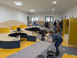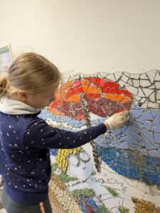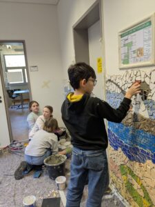 Ein herzliches Dankeschön geht an alle Beteiligten, besonders auch an die engagierten Eltern, die uns tatkräftig unterstützt haben! Diese gelungene Aktion war erst der Anfang: In den kommenden Wochen werden weitere 5. Klassen im Rahmen unserer Verschönerungsreihe aktiv und gestalten „ihre“ Wände mit eigenen Mosaikprojekten. Wir sind gespannt auf die kommenden Kunstwerke und freuen uns darauf, den Neubau weiter mit Leben und Farbe zu füllen.