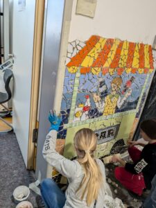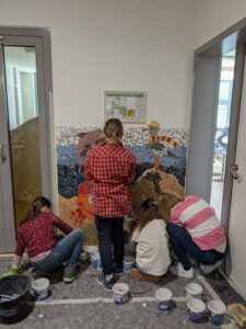 Mit viel Freude, Kreativität und Teamgeist haben die Klassen 5L1 und 5S1 den Anfang gemacht: Im Heimatbereich der 5. Klassen im Neubau sind neue, farbenfrohe Mosaikwände entstanden, die nun den Schulalltag verschönern und für eine besonders freundliche Atmosphäre sorgen.