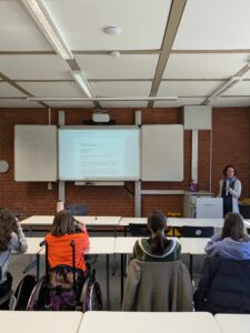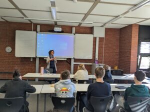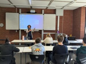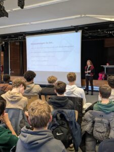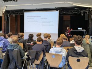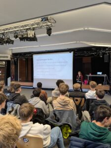 Ergänzt wurde der Tag durch spannende externe Impulse: Die Austauschorganisation YFU stellte Möglichkeiten für ein Auslandsjahr vor – und zeigte gleichzeitig, wie man sich erfolgreich für ein solches Programm bewirbt. Außerdem konnten die Schüler*innen durch ein Angebot der IHK an digitalen Unternehmensvorstellungen teilnehmen. So lernten sie Berufsbilder bei PKL, Volkswagen und der Ostfriesischen Teegesellschaft kennen und erhielten konkrete Einblicke in verschiedene Branchen direkt aus der Praxis.