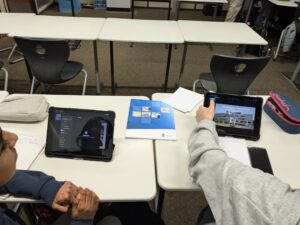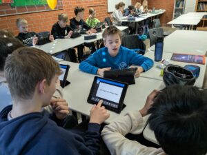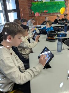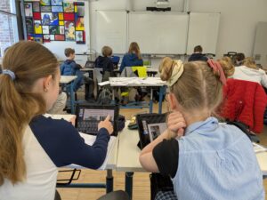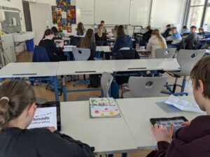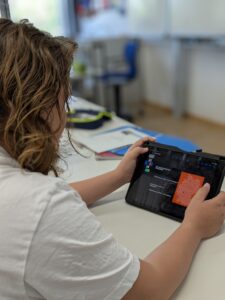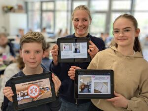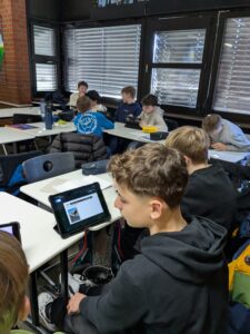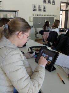 Bereits während des Zukunftstags sammelten die Schüler*innen fotografisches Material, das sie am Projekttag weiterverarbeiten konnten. In den Kunsträumen sowie in angrenzenden Klassenräumen arbeiteten sie von der ersten bis zur sechsten Stunde weitgehend eigenständig an ihren iPads – digitale Werkzeuge, die seit den Osterferien im künftigen Jahrgang 8 verstärkt zur Anwendung kommen. Im Zentrum stand die künstlerische Bearbeitung der Fotografien und die Auseinandersetzung mit den beruflichen Einblicken des Zukunftstags.