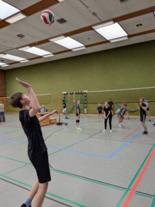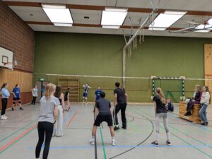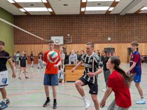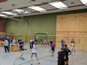 Jede Klasse ging mit vier bunt gemischten Teams an den Start, die in spannenden Gruppenspielen gegeneinander antraten. Von der ersten Minute an war klar: Hier ging es nicht nur um Punkte, sondern um Einsatz, Teamgeist und den Willen, gemeinsam etwas zu erreichen. Die Stimmung war energiegeladen, die Ballwechsel mitreißend – und dennoch blieb der faire Umgang miteinander jederzeit spürbar. Ob am Netz, in der Abwehr oder bei spektakulären Angriffen – die Teams schenkten sich nichts und boten ein sportliches Kräftemessen auf hohem Niveau. Wer letztlich das Rennen um den Turniersieg gemacht hat, sei an dieser Stelle offen gelassen – denn im Mittelpunkt standen nicht nur Tabellenstände, sondern vor allem das Miteinander und der sportliche Respekt.