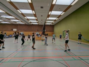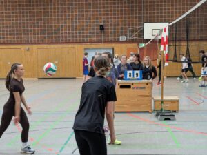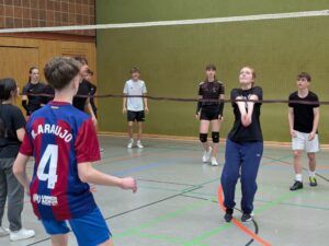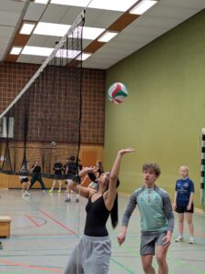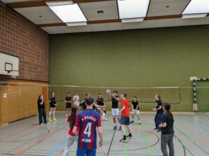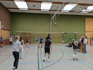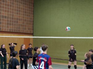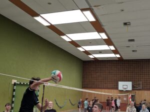 Knisternde Spannung lag in der Luft, als sich der 10. Jahrgang in der Sporthalle versammelte: Das langersehnte Volleyballturnier stand an. Nach Wochen der Vorbereitung war es endlich soweit – die Netze waren gespannt, die Teams hochmotiviert, und die Tribünen füllten sich mit erwartungsvollen Zuschauer*innen.