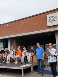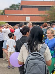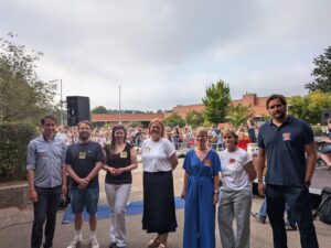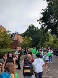 Insgesamt wurden sieben Klassen eröffnet – drei mit Spanisch, zwei mit Französisch und zwei mit Latein als zweiter Fremdsprache. Bei warmem Wetter war der Schulhof am Vormittag pickepacke voll. Passend zum Moment kam die Sonne heraus, als die Klassen offiziell zusammengestellt wurden.