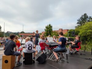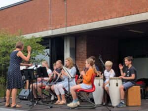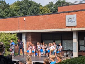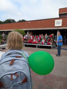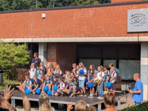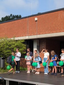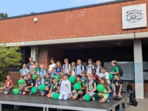 Schulleiterin Frau Lindemann und Unterstufenleiter Herr Thiessen begrüßten die neuen Fünftklässler herzlich, bevor sie von ihren neuen Klassenlehrer*innen in Empfang genommen wurden. Die farbenfrohe und fröhliche Atmosphäre wurde musikalisch untermalt von der Musik-AG unter der Leitung von Frau Böhme.