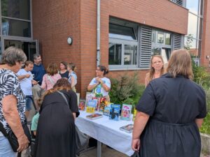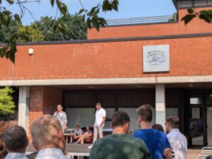 Begleitet von ihren neuen Paten zogen die neuen Klassen in den Neubau ein, um erstmals ihre Klassenräume kennenzulernen. Währenddessen bot der Förderverein den Eltern Kaffee, Gebäck und Getränke an – eine gute Gelegenheit, ins Gespräch zu kommen.