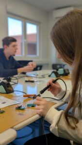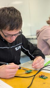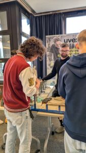 Löten, pflegen, beraten, programmieren oder chemische Prozesse verstehen – das Programm des Bildungswerks der Niedersächsischen Wirtschaft (BNW) und der Bundesagentur für Arbeit bot für jeden etwas. Die Schüler*innen wechselten im Laufe der Tage regelmäßig zwischen den Stationen und erhielten so vielseitige Einblicke in unterschiedliche Tätigkeitsfelder. Dabei ging es nicht nur ums Zuschauen, sondern ums Mitmachen: praktische Aufgaben, persönliche Gespräche und offene Fragerunden machten die Berufswelt greifbar. So konnten die Jugendlichen ausprobieren, welche Tätigkeiten ihnen liegen – und welche vielleicht weniger.