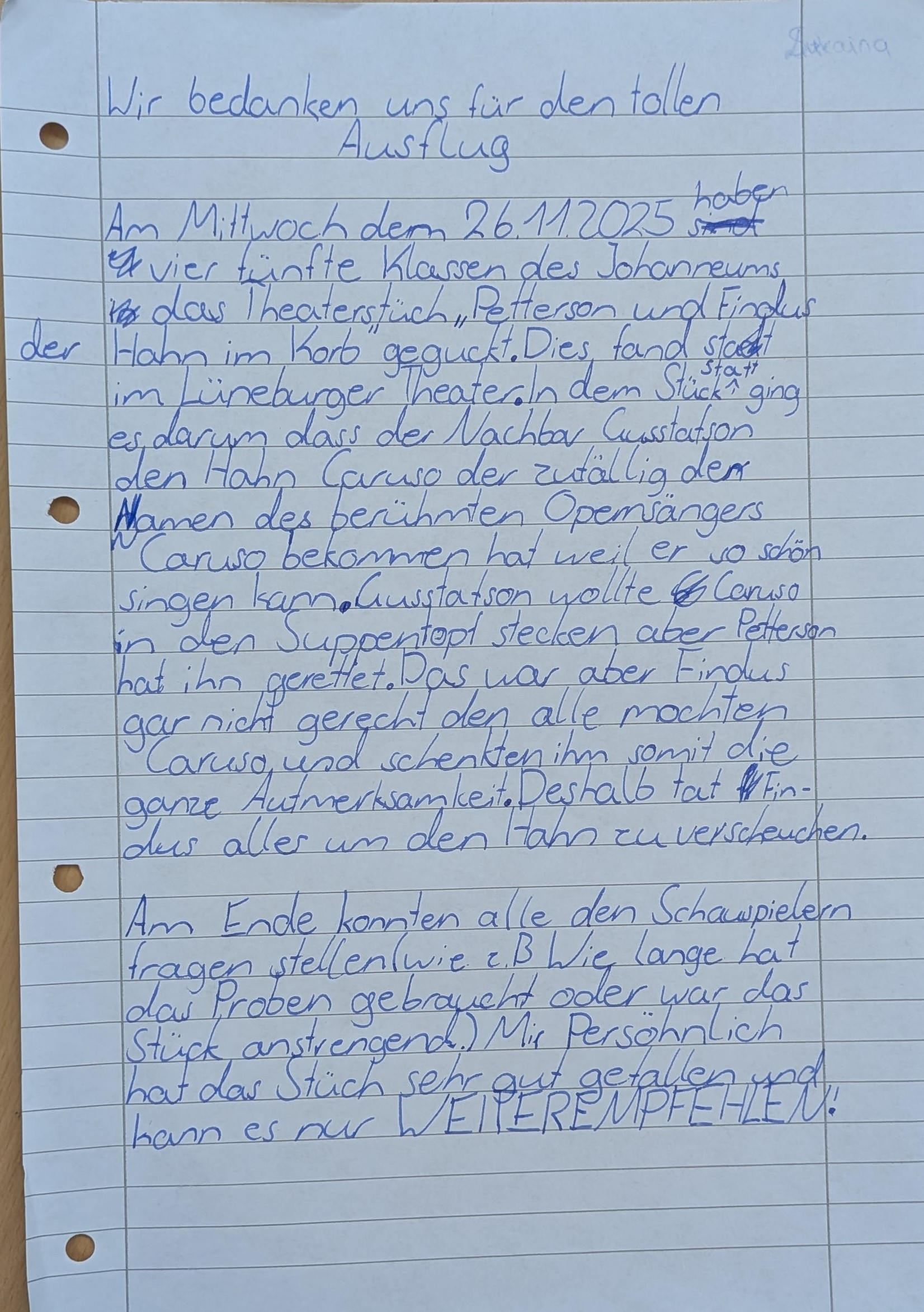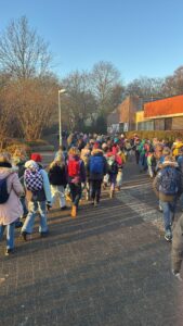 Trotz grauem Himmel und Regenschauer machten sich vier fünfte Klassen des Johanneums gemeinsam mit ihren Klassenlehrkräften zu Fuß auf den Weg ins Theater Lüneburg. Die Vorfreude war groß – schließlich stand mit „Pettersson und Findus – und der Hahn im Korb“ ein farbenfrohes und humorvolles Musical auf dem Programm.