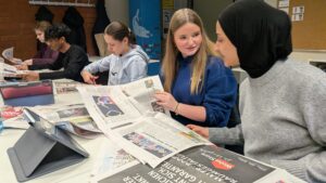 Die Schüler*innen entwickelten anschließend Collagen aus Zeitungen, Zeitschriften, Fotos und Symbolen. Diese Collagen sollten nicht nur ihre derzeitige Selbstwahrnehmung ausdrücken, sondern auch eine Brücke in ihre Zukunft schlagen: