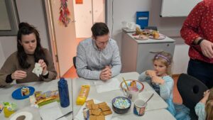 Besucht wurde die Feier von den Kindern der Klasse sowie von deren Eltern und Geschwistern. In gemütlicher Atmosphäre wurde gemeinsam gegessen, gespielt und die Adventszeit gefeiert.